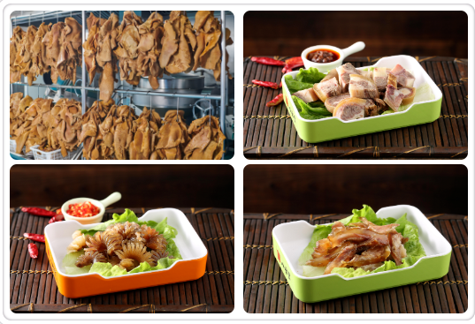 熟食生产线熟食生产线主要对牛筋、牛肚、牛鞭、牛尾等产品进行加工,为客户量身打造标准半成品,产品丰富。深手信熟食选取上等原料,确保产品质量,并清洗整理成所需形状,如:去筋膜、脂肪、油污、分割成合适块形等,将处理后的熟食原料及时卤制,配料严格按潮汕传统工艺执行,卤制时间、制过程式中要按规定进行翻动,保证其颜色、口感达到标准。