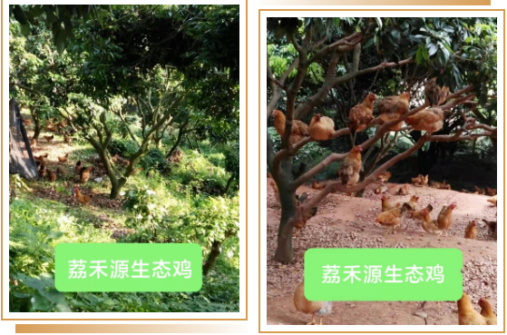 果园养殖“茘禾源”品牌鸡为主,放养在远离城市污染、空气清新的山林、果园中。